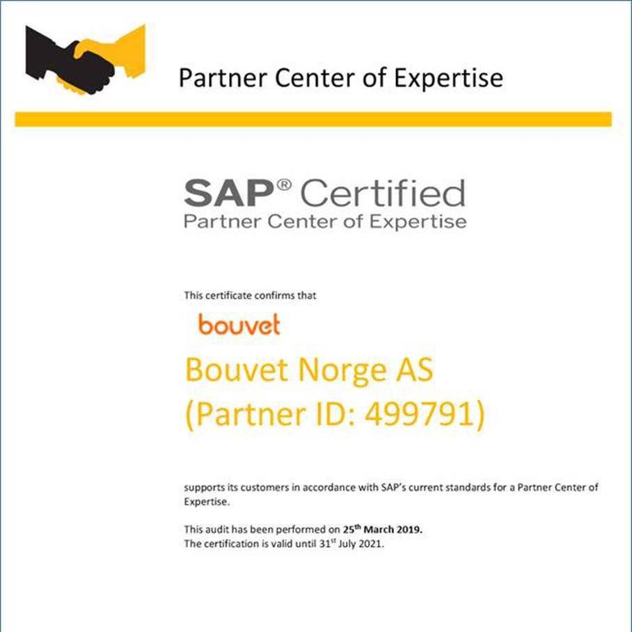 Bouvet har siden 2012 vært sertifisert SAP Partner Center of Expertise (PCoE) og har nettopp vært gjennom en ny revisjon og fått fornyet tillit.