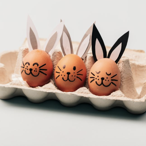 With a black marker, draw the hare's face in the middle of the egg - the eyes, nose, mouth and whiskers - and cut the long ears from colored paper. Preferably two layers of natural colored ears for the nicest effect. Glue the ear parts to each other and then to the egg. Repeat the steps until you have a whole load of cute Easter eggs. 🐣