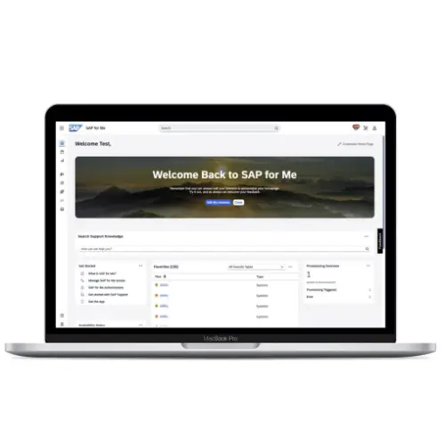 SAP for Me aggregates important alerts, metrics, and insights about your SAP product portfolio with a single access point. SAP for Me lets you interact with SAP and get guidance to the best solution for you.