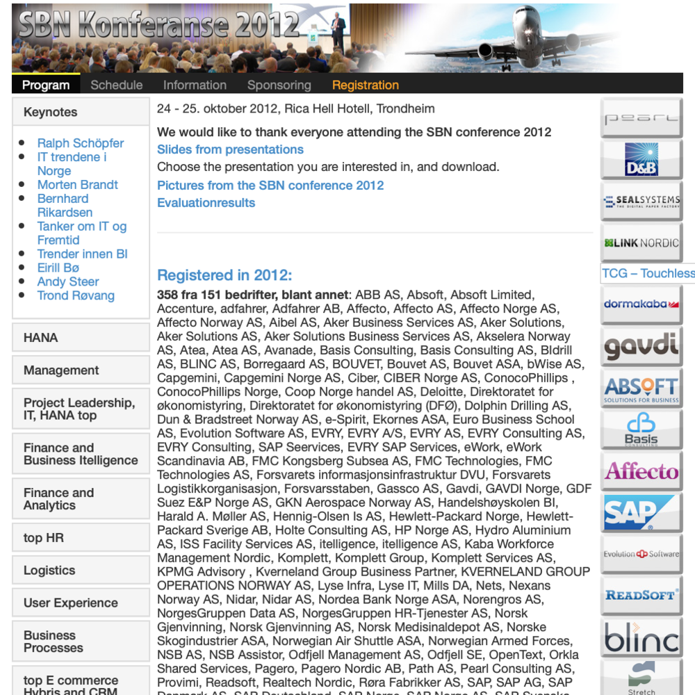 A glimpse of the frontpage and schedule of the SBN Conference 2012