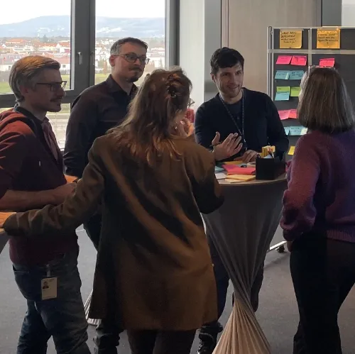 Picture from exercise for all participants called Table Rotation. The topics discussed in groups were: Future of Events, Increasing the performance of a User Group using AI , Closing the gap between business and IT users
