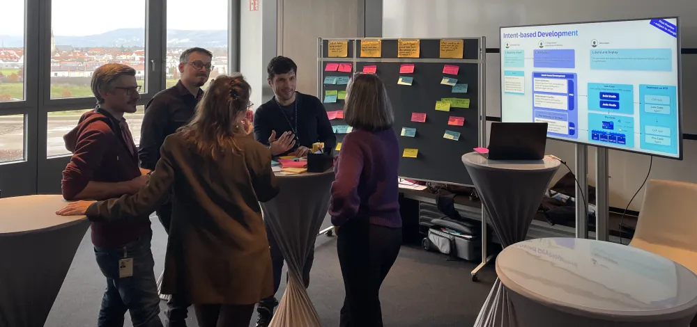 The lunch time is used for Market Place Session. Here Mirko Valentic, Pascal Jung, and Carsten Schmitt are discussing intent based development with Malena Guiterrez ASUG Mexico and EM from SBN.