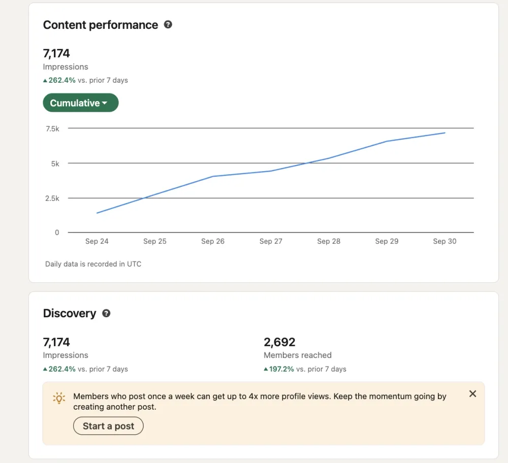I'm sharing the top performing posts on LinkedIn. Posts made by my account.