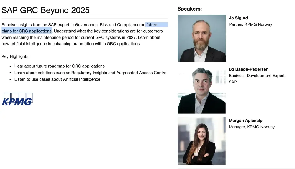 At 9:00 February 7 the future plans for SAPs GRC application will be revealed.
