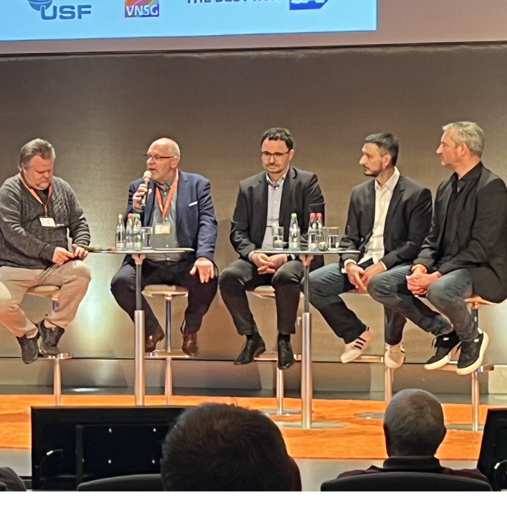 Panel Discussion representtives from SAPSA, VNSG and SAP. (SAP= Vassilios Lolas, Arne Speck and Bert Schultze)