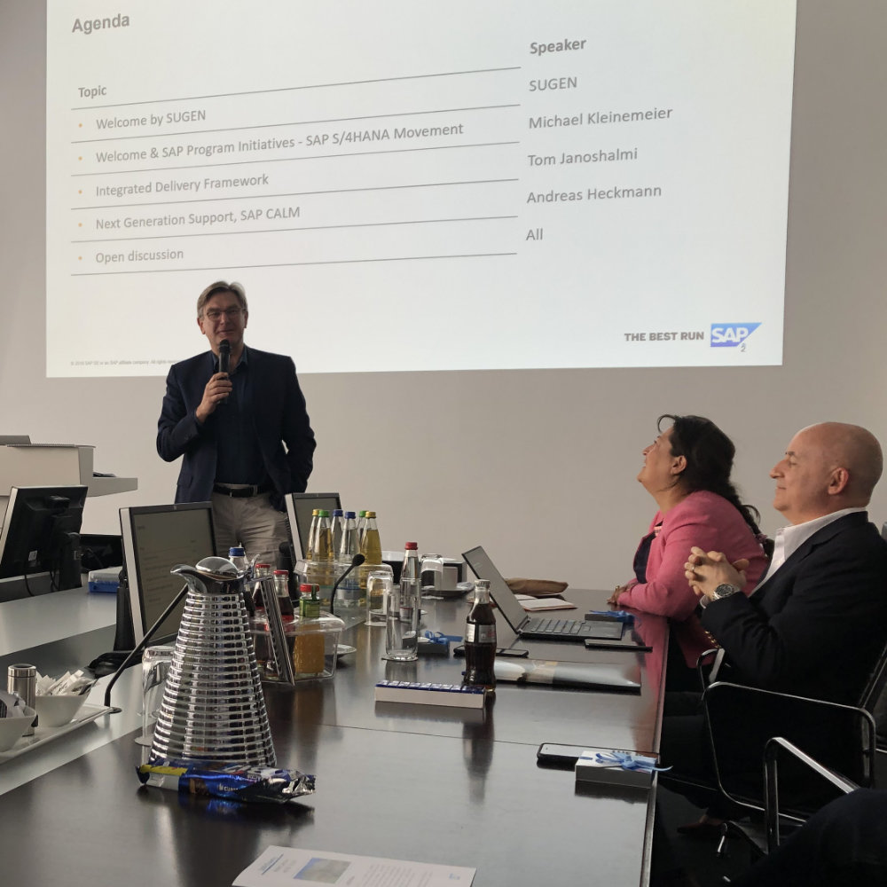 Our Exceutive Exchange Michael Kleinemeier (responsible for SAP Digital Business, leader of the SAP Digital Business Services organization and a member of the SAP Executive Board of SAP SE since 2015) opened with a nice individual handshake with every person in the room. He came together with his colleagues Andreas Heckmannand Tom Janoshami. Tom Janoshami talked about Integrated Delivery Framework and Andreas Heckmannabout Next Generation Support SAP Calm.