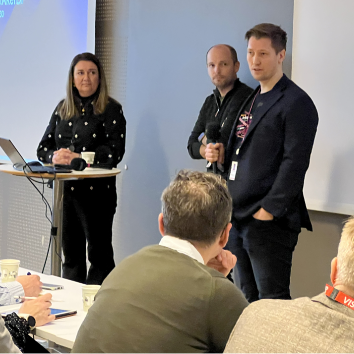 A sharing session of highlights, challenges and a short glance in the future and SAP notification Handler app,  Hilde Reve, Kristoffer Lanne and Kristian Førland Steinsland (talking)