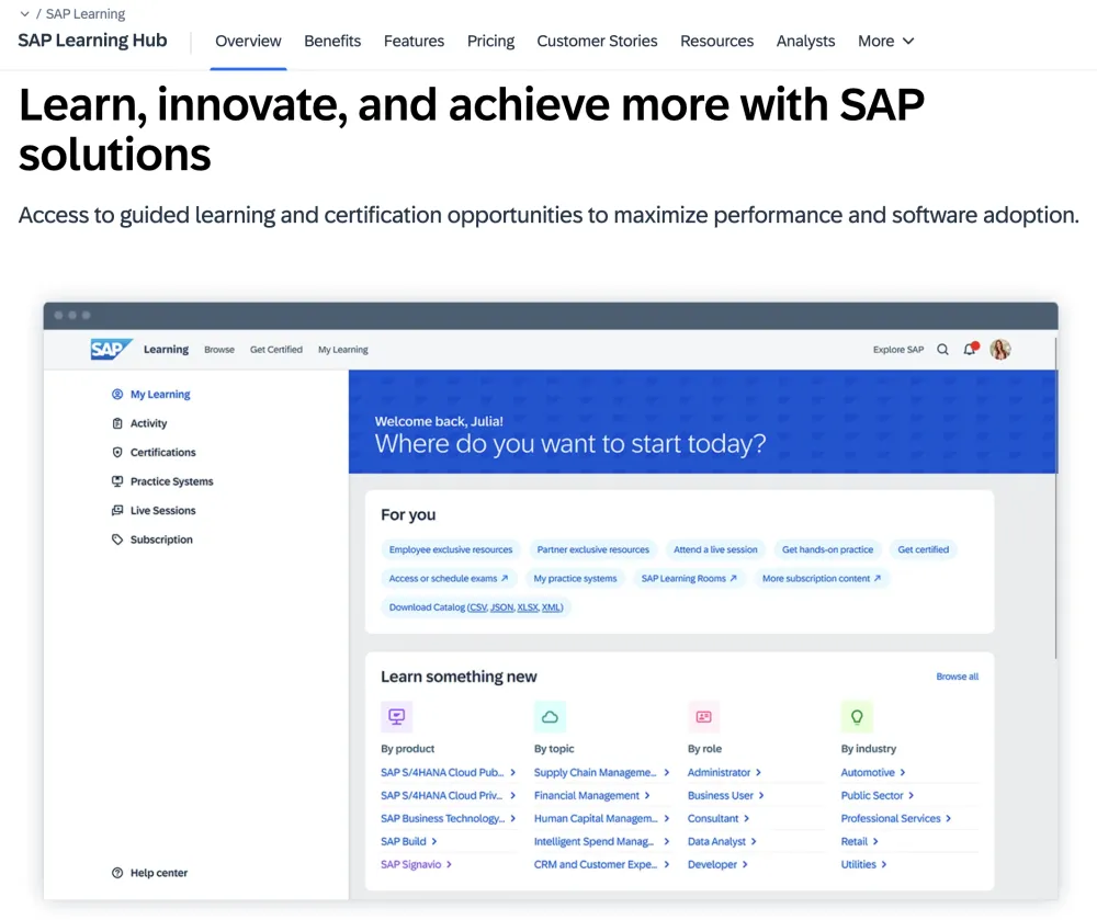 • Analytics that allows your Admin to follow the usage of SAP Learning Hub.